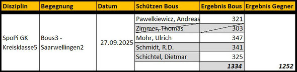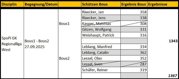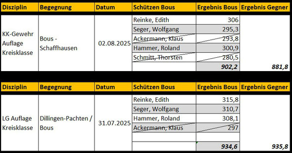 Rundenkämpfe: Saisonergebnis 2025 - KK-50m Auflage - Kreisklasse