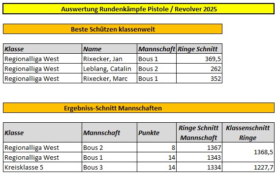 Rundenkämpfe: Saisonergebnis 2025 Luftgewehr / Auflage - Kreisklasse